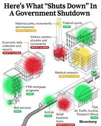 - Services: Medicare benefits, Social Security payments, and federal contracts for infrastructure and defense would be delayed.